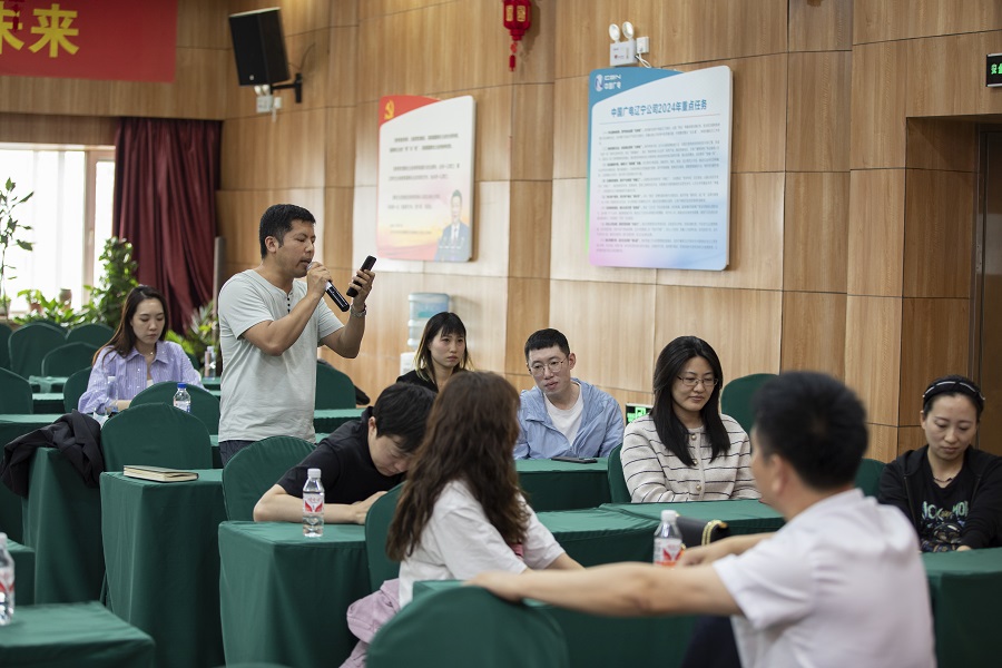 课间,为了让讲座更加生动有趣,赵楠老师还组织了互动环节。现场问答后,他让员工们进行即兴演唱,现场一对一的指导他们如何在没有伴奏的情况下保持音准和节奏,以及声乐演唱的行腔、吐字、运气等方面知识,让大家对声乐技巧有了更深层次的理解和认识,激发了员工们对声乐艺术的热情。