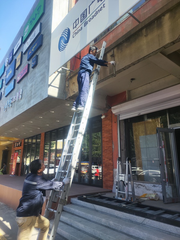党员干部始终挺在一线:于洪区域公司全体党员干部吹响这场攻坚战的集结号,带领全体党员冲锋在前。他们牵头组建拆改团队,肩扛手搬装修材料,保障日常运营与改造同步推进;曾担任驻村第一书记的史艳清,将坚韧奉献的驻村精神带回团队,与主管刘珣共同提出“把营业厅当成‘家’来建”的口号,还带头放弃休息时间,亲自动手参与营业厅拆改。全体员工心往一处想、劲往一处使:为节省开支,大家从公司内部及停用营业厅搜集闲置建材,甄选可复用旧件,让老设备焕发新生——旧门头覆盖原营业厅名称,贴上“长江北街营业厅”字样,便成了新门头;从铁西二区域公司“退役”的营业板台,经打磨后再度“上岗”;唯一一台空调来自原机房拆机;废弃玻璃板被改造成明亮隔断;机房门框由三种不同材料拼合而成;没有专业施工队伍,就自己调漆刷墙、更换窗户;营业厅地砖“东拼西凑”,色差明显处便铺地毯遮盖;吊顶则是从其他废弃机房拆下后自行拼装;为避免隔壁浴池潮气导致墙面“长毛”,就用铝扣板替代处理……营业厅的每一处细节,都写满团队修旧利废的巧思与亲手打造的痕迹。