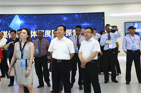 5月31日,2018年欧亚国家广播电视中高层管理人员研修班代表一行32人到北方广电网络公司进行交流考察。下午三点,代表们在北方广电网络公司总经理曾绍武的陪同下参观了公司全业务展播大厅,观看了公司发展宣传片,听取了公司总经理曾绍武对智慧社区、体感游戏、VR等基于“极速云电视”开发的新产品、新业务的情况介绍,并参观公司国内行业领先的全业务播控中心。