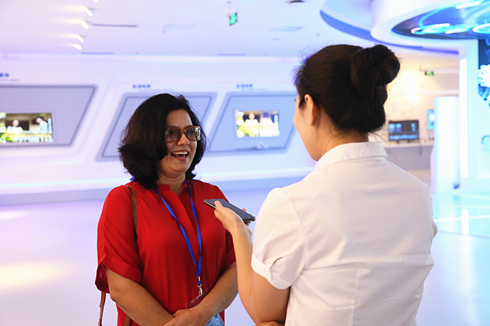 尼泊尔电台项目主管玛娅•欧丽女士认为,这是一次充满了惊喜的参观,VR体验让她沉浸其中,来到这里她看到了广播电视产业深度发展的样子,她希望未来在尼泊尔也能建造出如此现代化的场馆,赶上北方广电的发展步伐。