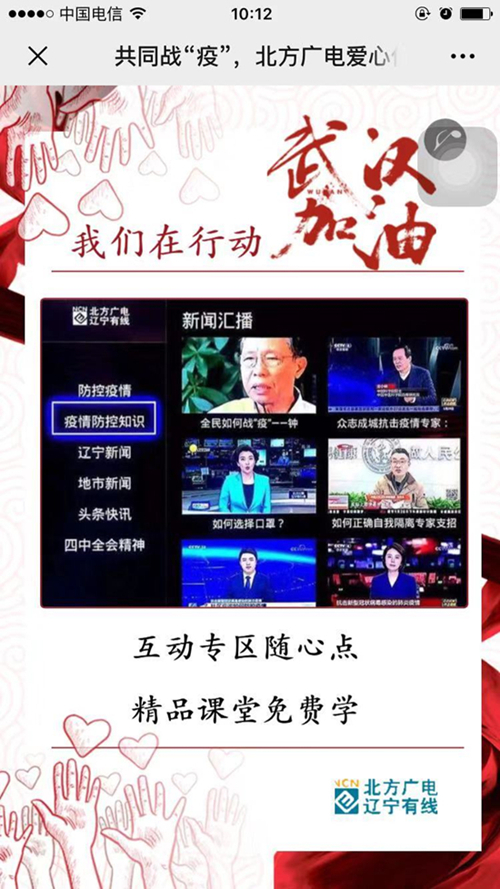 北方广电愿同全国人民一道,团结一心、同舟共济,齐心协力做好疫情防控工作;北方广电全体员工将从自己做起,从身边做起,奋发有为、共克时艰,坚决打赢这场疫情防疫攻坚战!