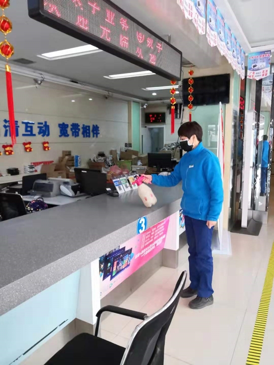 入党积极分子许可同志主动放弃假期,每天提前半小时消毒营销设备和工作台面,随时清理营业厅卫生。共产党员张妍同志,全天侯值守,坚持为营业厅员工及进厅客户测量体温,并随机耐心地为客户讲解疫情防控知识和注意事项。党员们表示:“只有保护好自己,我们才能更好的保护用户、更好地开展服务工作!”