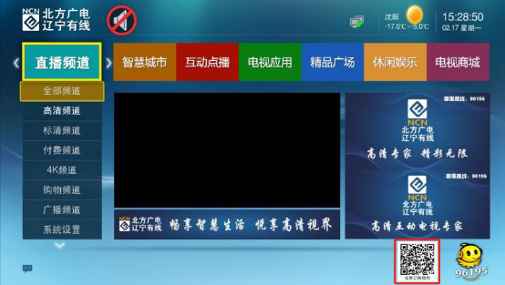如果您家里已安装北方广电机顶盒,开机后扫描屏幕右下方“业务预约二维码”,即可进行业务预约。