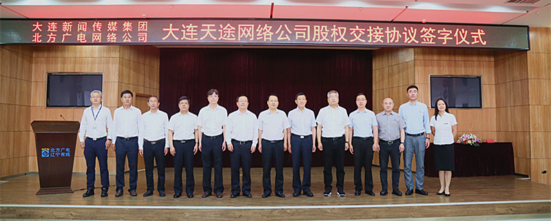 6月9日上午,北方广电网络公司与大连新闻传媒集团在公司7楼会议室举行了大连天途有线电视网络股份有限公司股权交接签字仪式。省广电局副局长栗万红,北方广电党委书记、董事长、总经理曾绍武,大连新闻传媒集团副总经理李盛之等领导出席签字仪式。仪式由北方广电网络公司纪委书记陈金宏主持。大连新闻传媒集团副总经理李盛之和北方广电网络公司副总经理张晓钧代表双方签字。