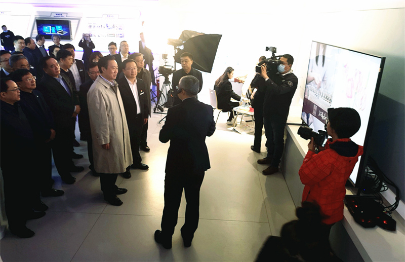 下午14时20分许,夏德仁主席一行来到北方广电5G应用创新综合展示厅和播控指挥调度中心,认真听取了北方广电党委书记、董事长、总经理曾绍武对有关企业发展、“全国一网”整合、5G应用创新等情况的汇报;详细了解了公司互动业务、融合网络、智慧广电建设等基本情况和主营业态;重点了解了广电5G的特点、优势、应用及发展规划;现场体验了广电5G+媒体制作、AR、VR呈现、云游戏等新应用;悉心考察了广电5G+8K直播、智能安防、智慧家庭、智慧社区、智慧教育、智慧医疗等广电5G智慧应用;实地参观了云数据中心和播控指挥调度中心;详细询问了北方广电改革发展面临的形势、机遇和问题。
