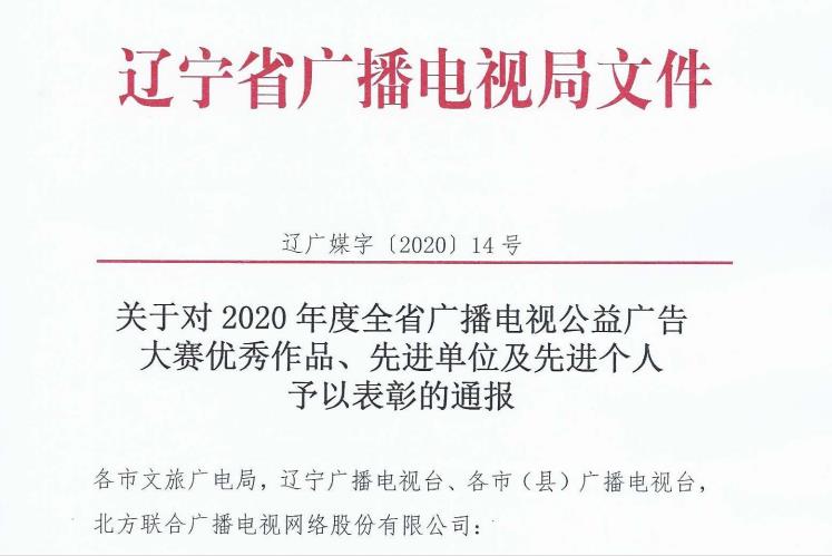 2020年是辽宁省广播电视公益广告大赛完胜之年。全省各级、各类广播电视机构以习近平新时代中国特色社会主义思想为指导,坚持正确政治方向、舆论导向和价值取向。充分利用广播电视公益广告的独特优势,讲好辽宁故事、展示辽宁形象。