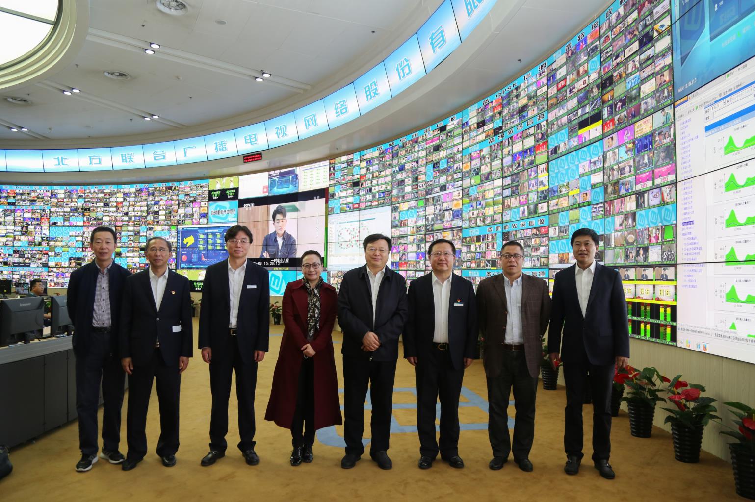 公司领导陪同辽宁开放大学领导参观全省直播信号集中监控平台并合影