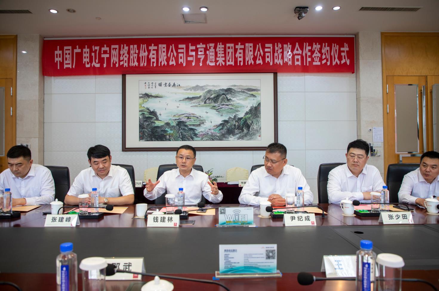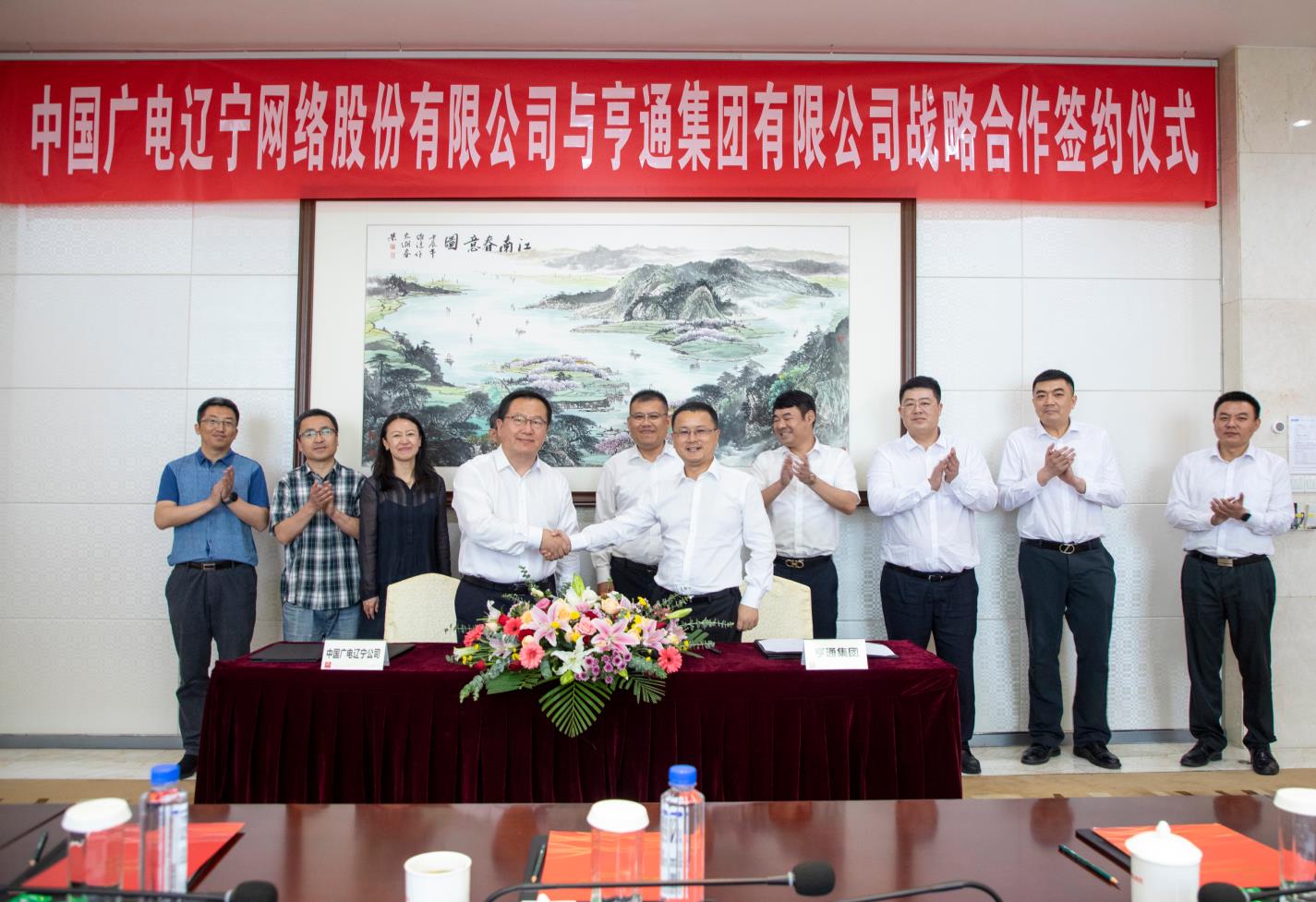 2021年6月4日上午,3044永利集团(简称辽宁广电)与亨通集团有限公司(简称亨通集团)战略合作协议签约仪式在苏州亨通集团总部举行。辽宁广电党委书记、董事长、总经理曾绍武,总工程师王兆恒,总经理助理王婷与亨通集团执行总裁钱建林,运营管理中心总经理尹纪成,通信产业集团副总裁、亨通光电总经理张建峰出席了签约仪式。
