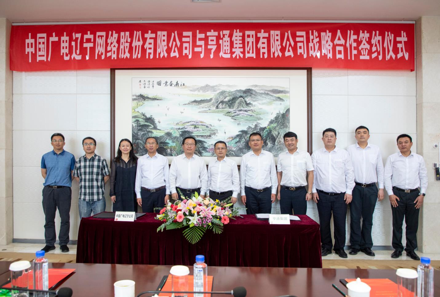 辽宁广电技术工程部(5G建设中心)总经理李大明、辽宁广电资产管理部总经理殷伟、沈阳亨通总经理张少田、沈阳亨通市场营销中心总经理罗闻、沈阳亨通市场营销副经理潘子斌出席了签约仪式。