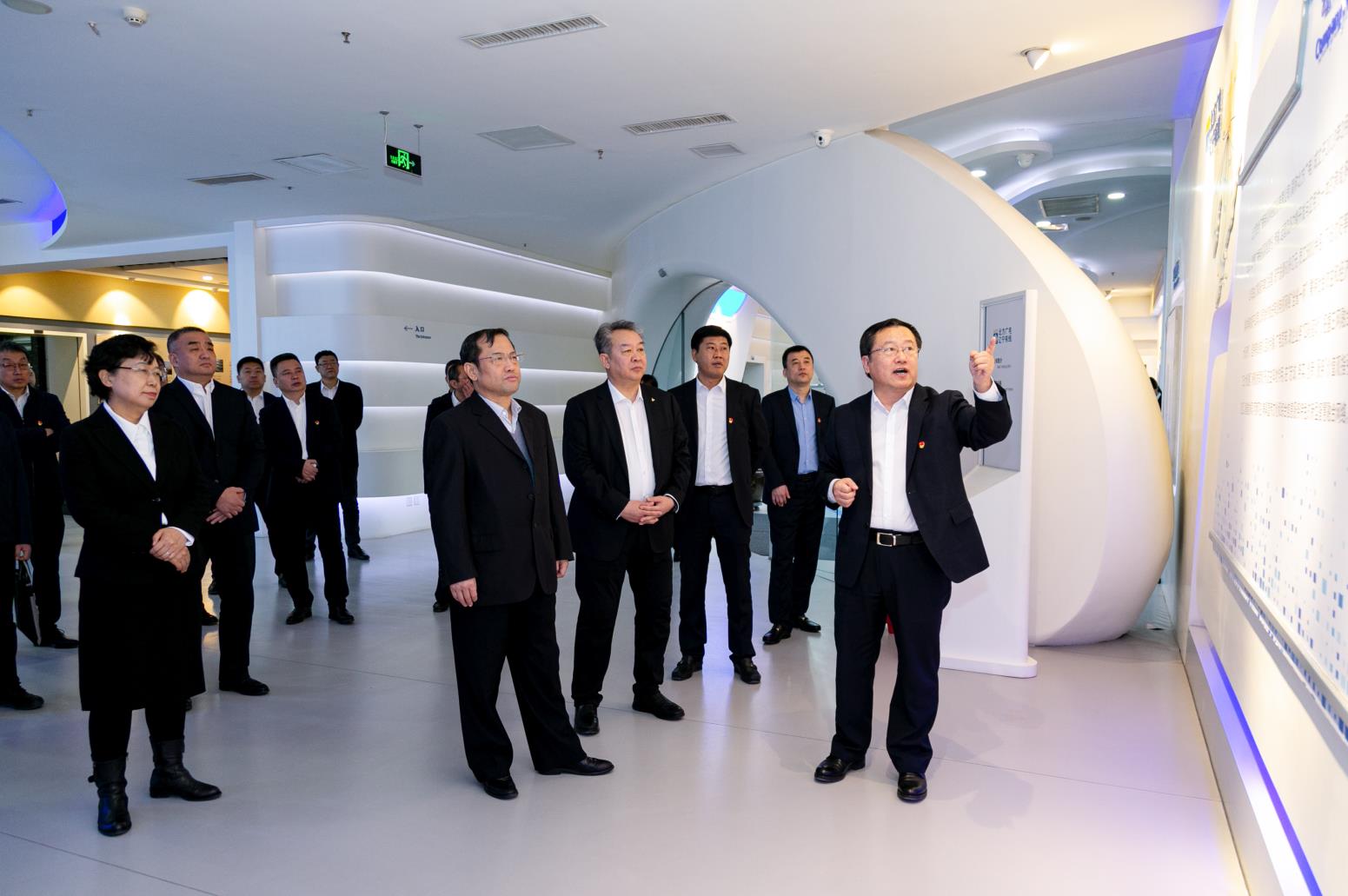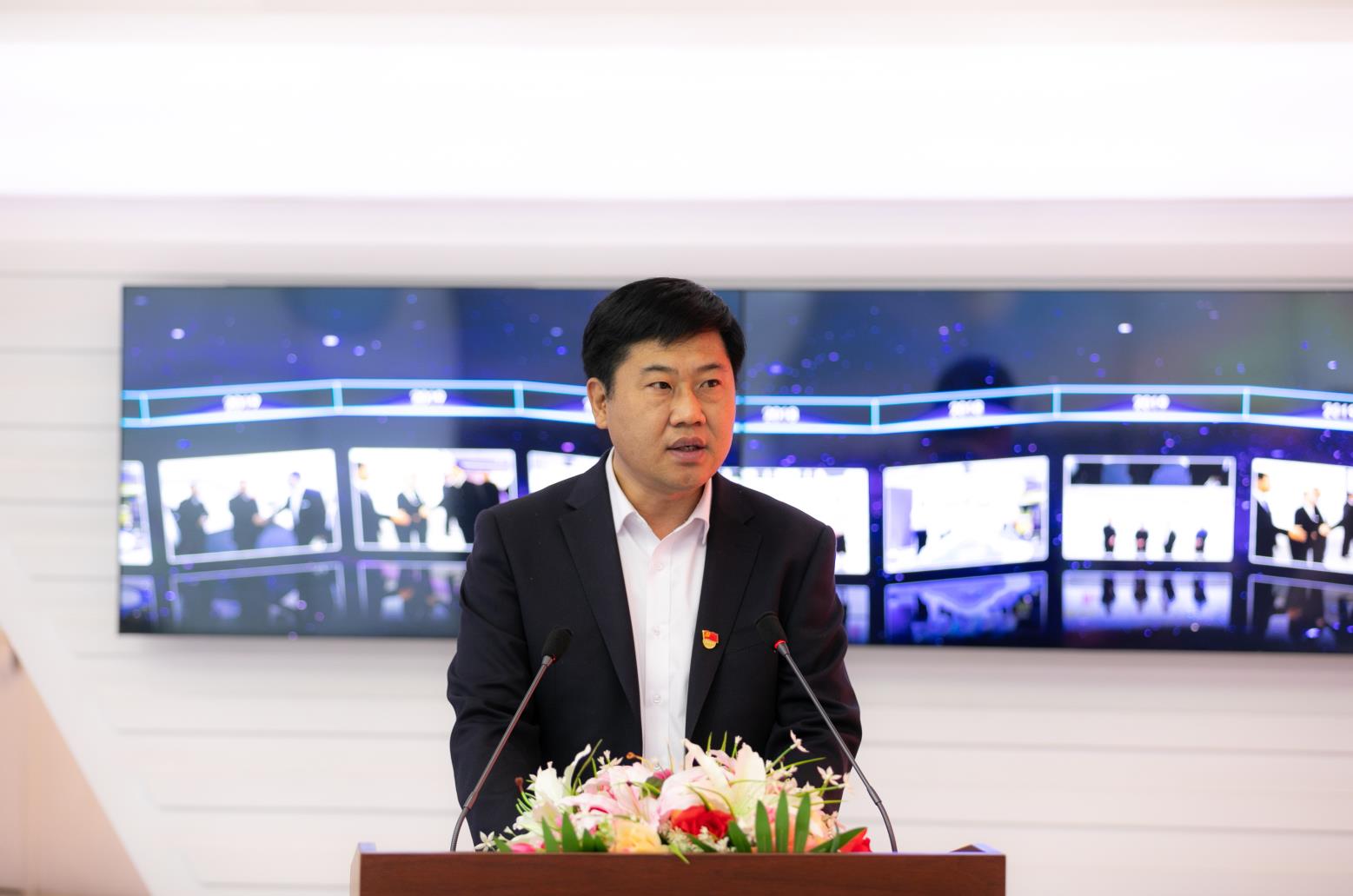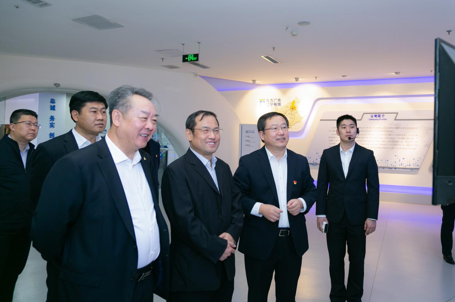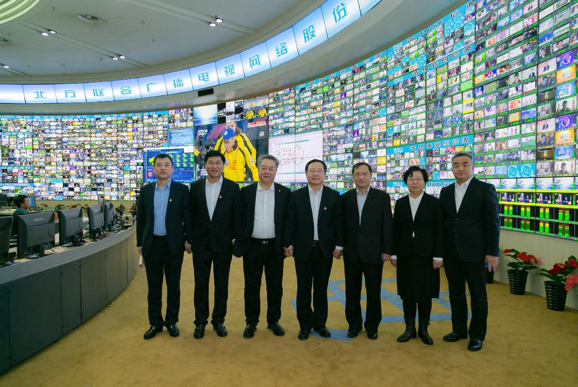 战略合作三方领导在监控平台前合影