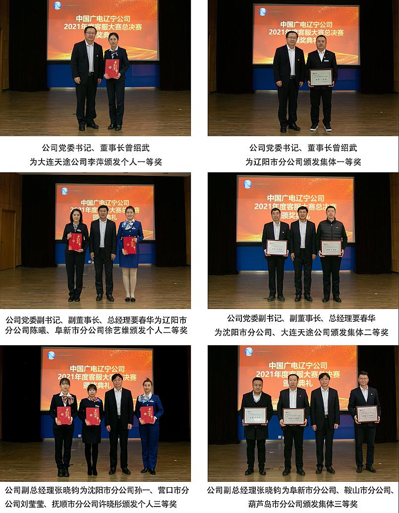 颁奖仪式结束后,公司党委书记、董事长曾绍武发表了热情洋溢的讲话。他首先向获奖个人和集体表示祝贺,向积极参与大赛的员工和各分(子)公司表示感谢,对赛事组委会的精心组织表示赞扬。他表示,此次大赛在公司去年首届客服大赛的基础上,对形式进行了创新、对内容进行了丰富、对范围进行了拓展,取得了良好的成效。在竞赛过程中,每名选手都能高度重视、认真准备,赛出了能力,赛出了水平,赛出了辽宁广电人积极向上的精神风貌,为大家点赞!曾绍武董事长指出,3044永利集团属于服务型企业,服务是企业赖以生存的基础,我们要始终秉持“服务至上”的理念,努力提升为用户服务的质量。距离2022年还有15天时间了,希望大家能够带着本次大赛的丰硕成果回到工作岗位上,勤勉工作,努力做好年度冲刺、年终收尾和新年“开门红”工作,共同为公司转型升级高质量发展做贡献,迎接更加美好的未来!