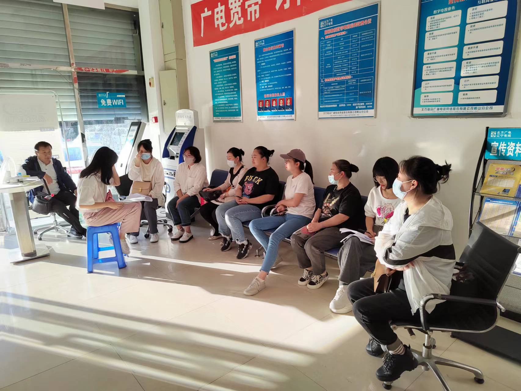 为了大力推广5G 192业务,立山区域公司积极响应全员营销的号召,干部员工带头选号办理192业务,积极发展身边亲朋好友,通过广发微信朋友圈、抖音号等形式,实现社交裂变拓展新用户。客服专员利用上门安装和维修的机会,以固移产品为主、单移产品为辅的策略进行5G业务推广。营业厅内外布置宣传展板,厅内循环播放5G业务宣传资料,用户进厅后人手一张宣传单,专人负责进行业务解读,方便用户快速了解广电5G业务。同时,区域公司还利用集中收费现场、老旧小区光改现场、宣传车等阵地积极进行营销,不放过任何一个与用户面对面营销的机会。