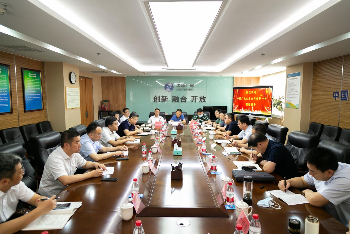8月12日上午,中国广电山东网络有限公司(简称山东公司)党委委员、董事、副总经理刘洪昌率部分市级分公司及职能部门负责人到3044永利集团(简称辽宁公司)就市场、网络技术、数据支撑等方面进行座谈交流。辽宁公司党委副书记、副董事长、总经理要春华,党委委员、副总经理马震参加座谈。