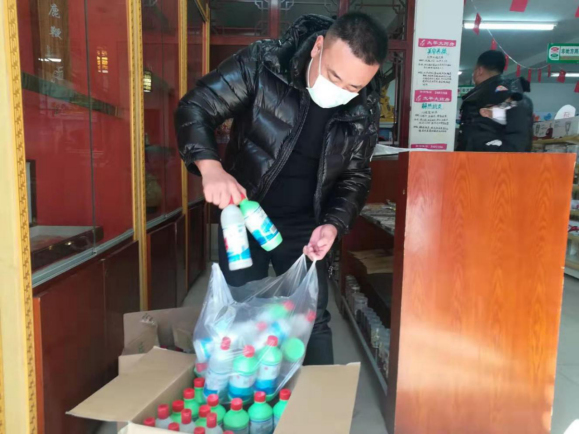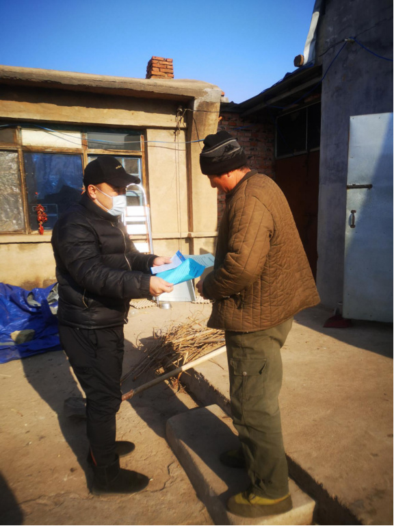 何剑飞深知,上等皋村位于镇政府所在地,1200余名村民里外出务工春节返乡人员较多,疫情防控压力较大,而且村里医疗水平有限,人们防控意识较弱、防控措施较少。于是,他积极了解并自学疫情防控知识,并通过电话及微信、QQ群向村“两委”干部和村民开展防控科普。他跑遍附近市区村镇药店,自费购买20瓶84消毒液、50个口罩、50副医用手套等防护用品,及时分发至一线工作人员手中。