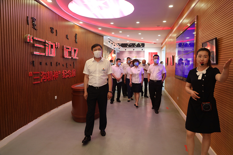 在基地展馆内,与会人员共同参观了抚今追昔、战天斗地、落地生根、硕果累累四个单元,在讲解员的讲解下追溯历史踪迹,共同学习“三沟精神”的由来、延续和发展过程。忆峥嵘岁月,回顾当年“三沟人”不畏艰难,自力更生,艰苦创业的历程;感受“三沟人”勇于拼搏的英雄气概,开拓创新、造福百姓的感人事迹;深刻体会到了“三沟精神”的深刻内涵。
