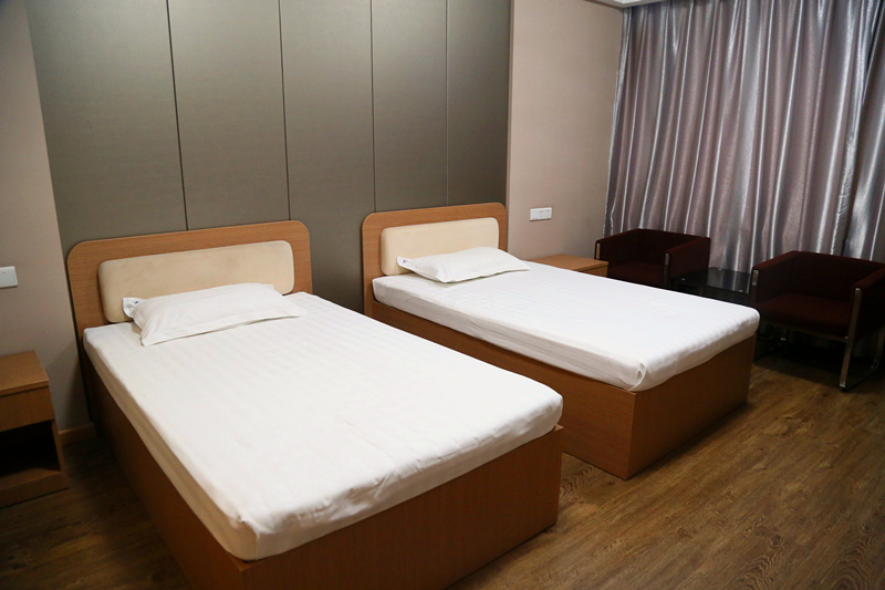 “女职工关爱室”房间面积约20多平方米,配有独立的卫生间,热水器等,24小时提供热水;室内放置2张单人床、1套沙发,床单、窗帘定期清洗;配有储物柜2个、电视机1台、饮水机1台、消毒柜1个、冰箱1台和电源插座;室内布置合理舒适,内装色调柔和温馨。
