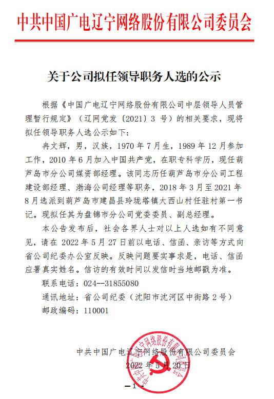 关于公司拟任领导职务人选的公示
