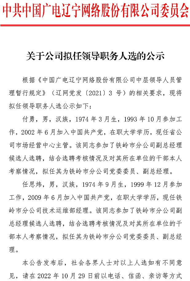 关于公司拟任领导职务人选的公示
