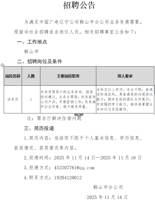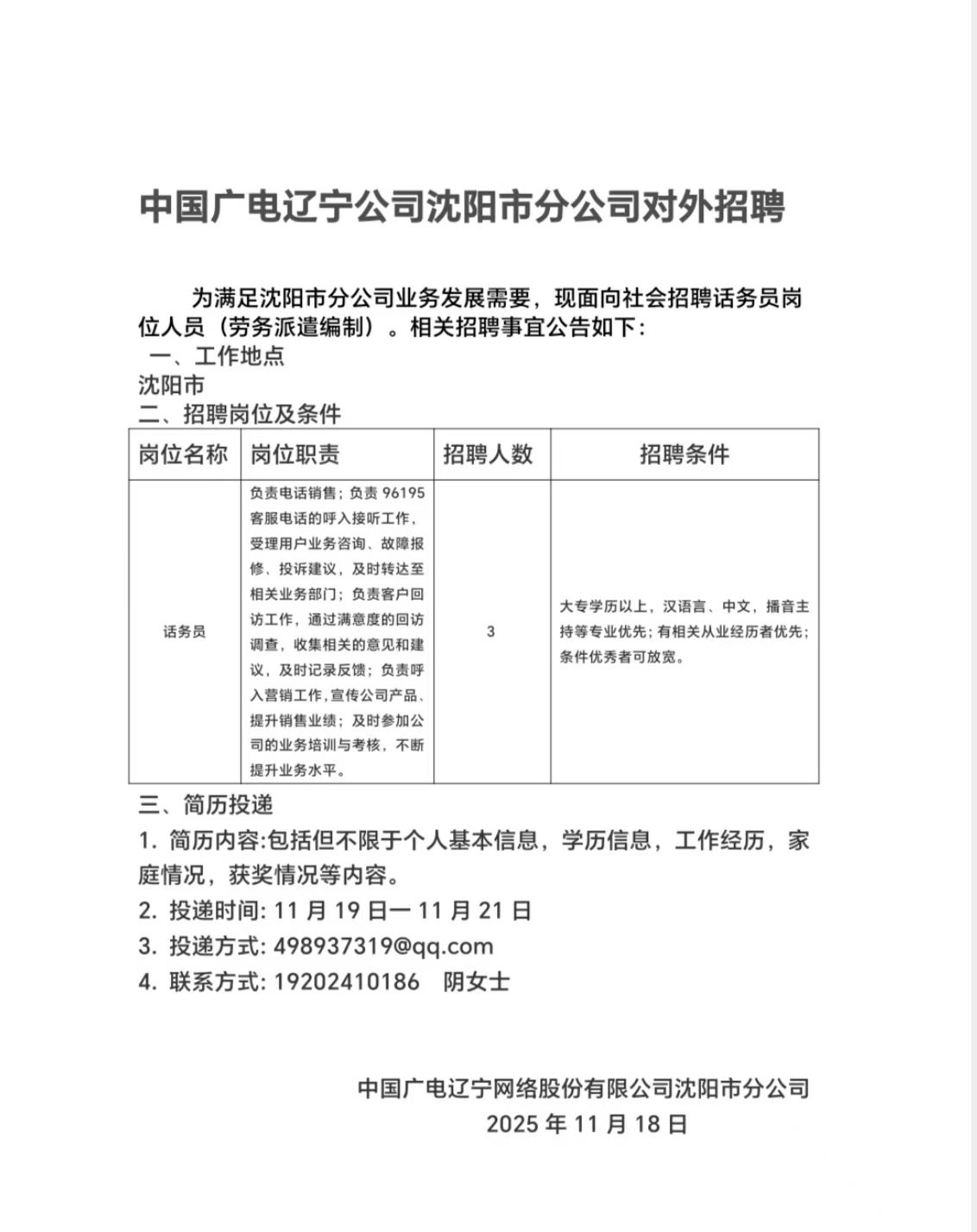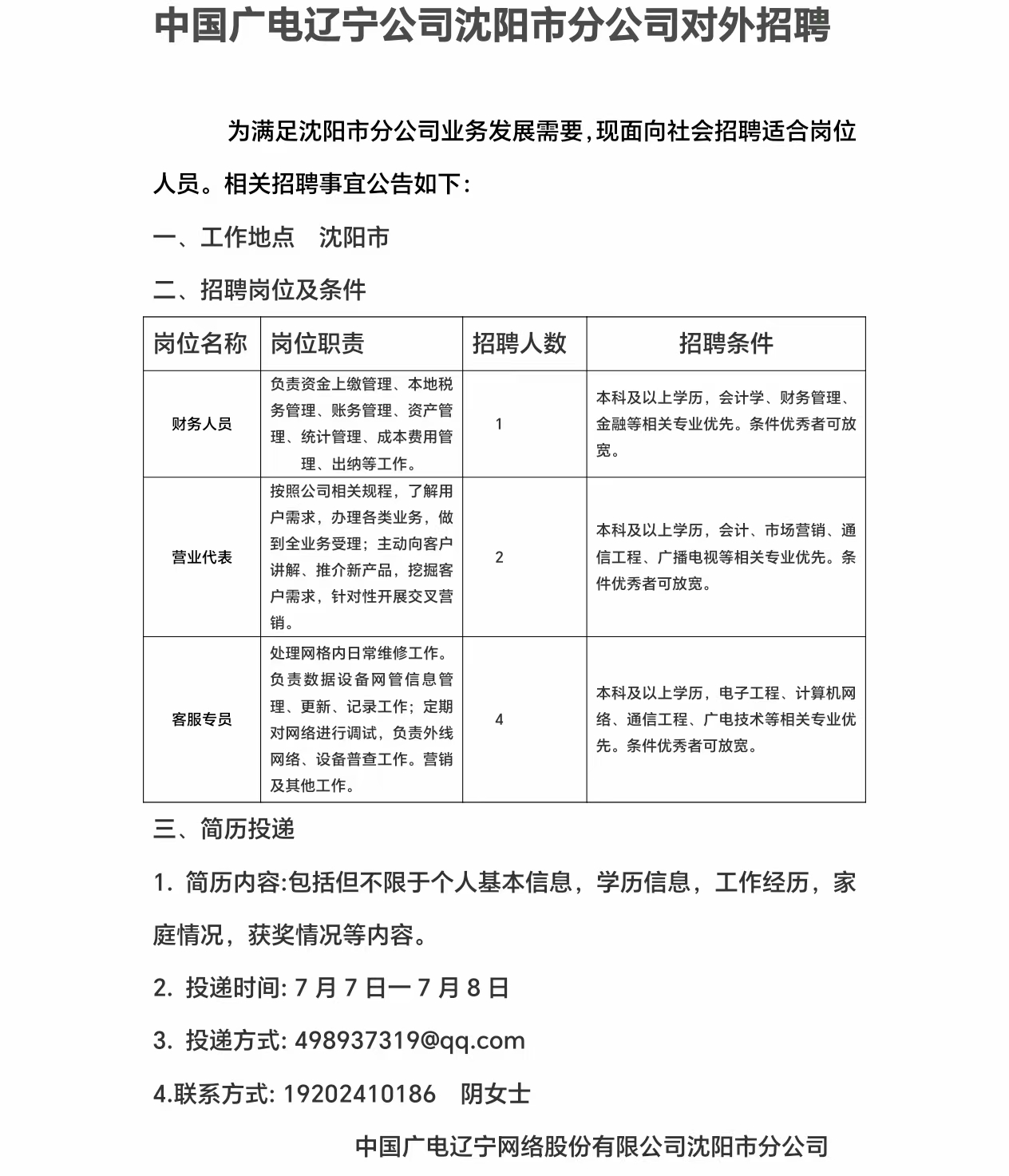 联系人:阴女士 简历投递邮箱:498937319@qq.com